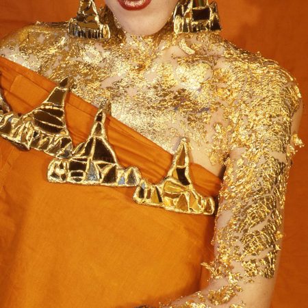 Burmese style photoshoot featuring Scarlett Cannon wearing Andrew Logan jewellery