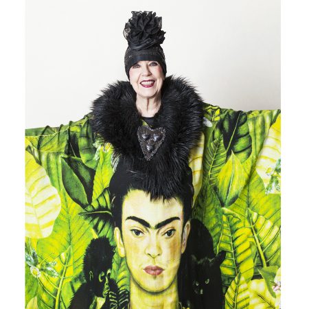 2016 Size(s) on requestMolly Parkin, British painter, novelist and journalist, photographed wearing her Andrew Logan Alternative brooches