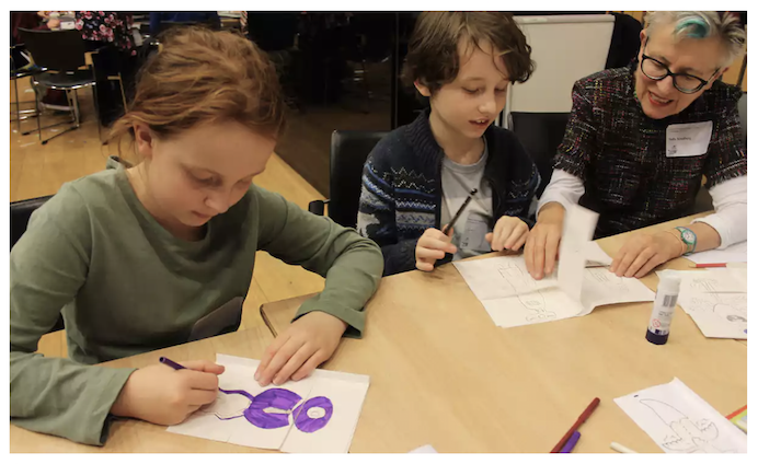 Article on the cartoon and art family day in which Andrew Logan participated.